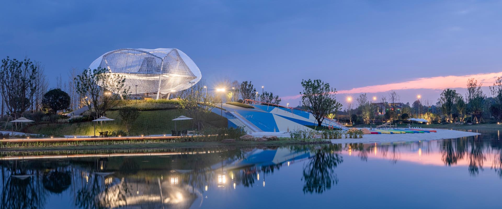 原生態(tài)資源突出,擁有大片山體、農(nóng)田,和項(xiàng)目現(xiàn)狀最大的天然水體。利用地塊原有的山體、活水資源,結(jié)合極具現(xiàn)代感特征的水面棧道、抽象的云朵雕塑、親水樂園,以及塊狀的花田,勾勒出一幅生態(tài)自然、美麗怡人的現(xiàn)代田園風(fēng)光;以時(shí)尚浪漫、親子體驗(yàn)為特色,打造西南地區(qū)精品花海小鎮(zhèn),成為“天府新區(qū)”的一張生態(tài)名片。