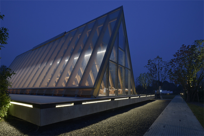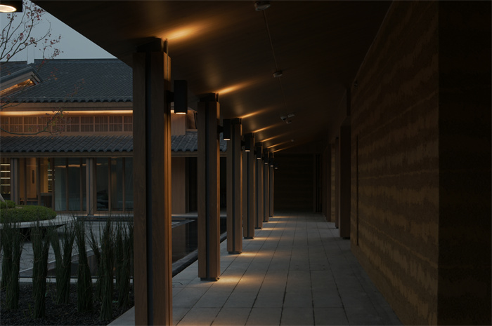 建筑汲取地方建筑特色斜屋頂、青瓦、原木構(gòu)架、竹編等,色調(diào)古樸自然,帶有濃郁的成都韻味。在空間布局上如同卷軸畫一般,隨著路徑的深入徐徐展開,起承轉(zhuǎn)合,有門、有巷、有院、有墻、有廊 ,游覽其中,體會曲徑通幽寧靜舒適。