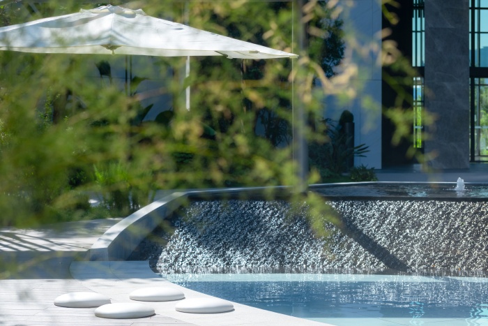 長灘以其一線臨湖、三面環(huán)水的獨特地理位置,呈現(xiàn)出稀缺的組團形態(tài),巧妙地將“金玉相稱”與“琢石成玉”相結(jié)合,從建筑所形成的圓盤空間出發(fā),以景觀的玉盤概念為切入點,將園區(qū)空間的價值最大化。